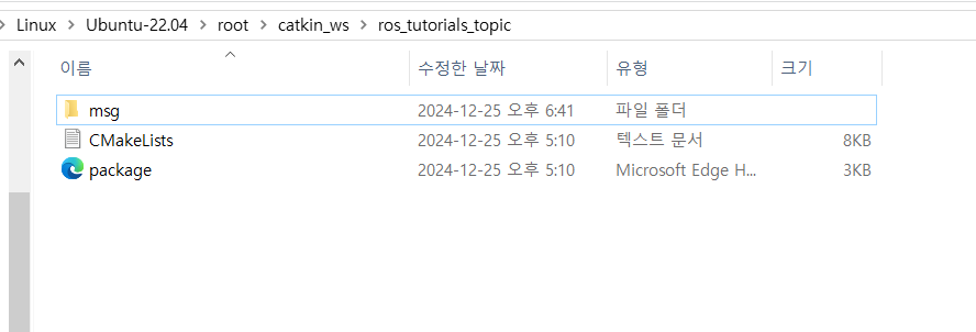 단, ROS 인터페이스 파일은 /msg 및 /srv 또는 /action 폴더에 위치시키며 인터페이스 파일명은 CamelCased 규칙을 따른다. 그 이유는 *.msg 및 *.srv 또는 *.action 파일은 *.h(pp) 및 모듈로 변환한 후 구조체 및 타입으로 사용되기 때문이다.