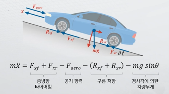 - 차량의 종방향 거동을 결정 짓는 구동력/제동력, 타이어-노면 상호작용에 의한 마찰력