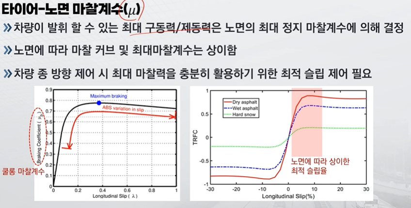 - 비선형 구간은 불안정한 영역 : 종방향 슬립 제어를 통해서 선형 구간으로 복귀 필요