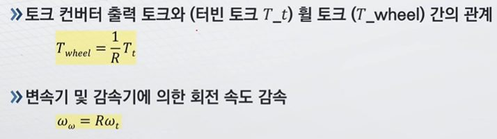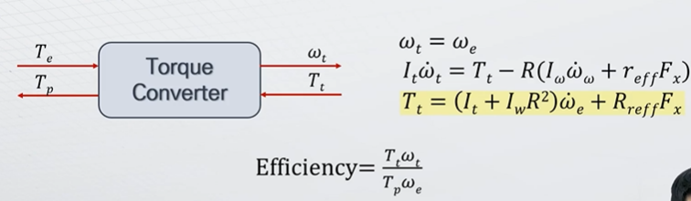 - 토크 컨버터는 다음과 같이 입력 파워 대 출력 파워의 비로 효율을 정의 할 수 있음