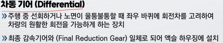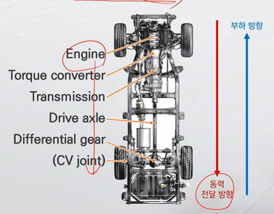 - 내연기관 구동계 주요 컴포넌트 : 엔진, 토크컨버터, 변속기, 차동기어 등