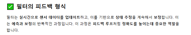 - 시스템의 상태와 그 분산값을 이용해서 그 시스템의 불확실성에 대한 최적의 추정을 하는 것