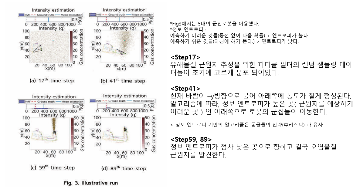 - 다중 로봇들이 점차 엔트로피 값이 낮은 지역으로 이동하며 근원지를 좁혀나간다.