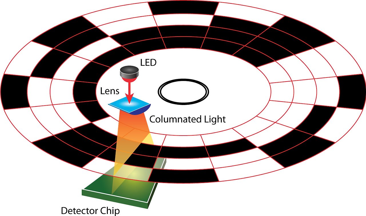 ▶ 빛을 이용하여 디스크의 슬릿 패턴을 감지