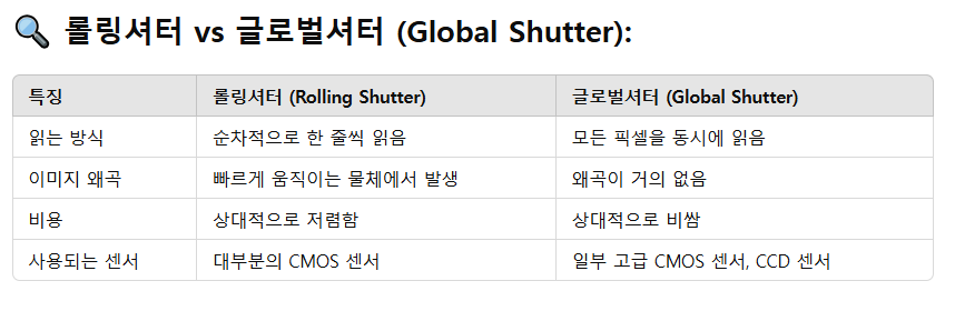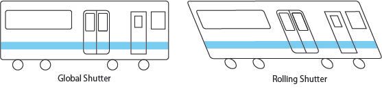 카메라가 영상을 취득할 때 센서 Array의 모든 Pixel값을 동시에 취득하지 않는경우 롤링셔터 효과가 발생하여 이미지의 왜곡이 발생 할 수 있다.