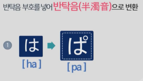탁점은 카,사,타,하 행에만 찍을 수 있음