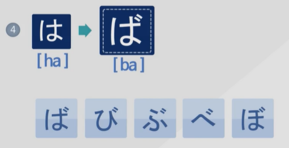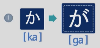 탁점을 찍어서, 탁음으로 변환. 탁음 : 음을 탁하게 만드는 것