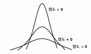 (1) 첨도 : 자료의 분포가 얼마나 뾰족한지 나타내는 척도