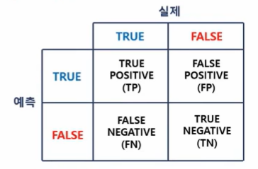 → 예측과 실제가 같으면 TRUE, 예측이 TRUE면 POSITIVE