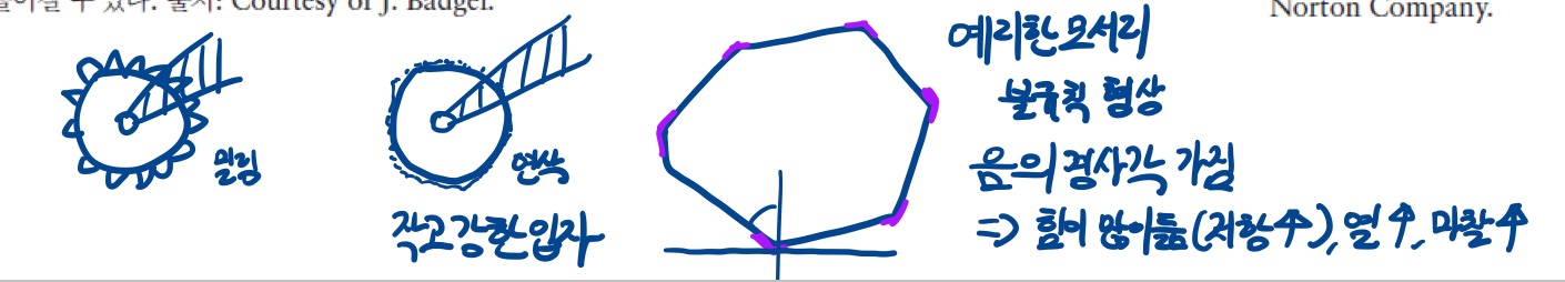 연삭가공시 연삭재는 파쇄성이 좋은 것이 유리하다.