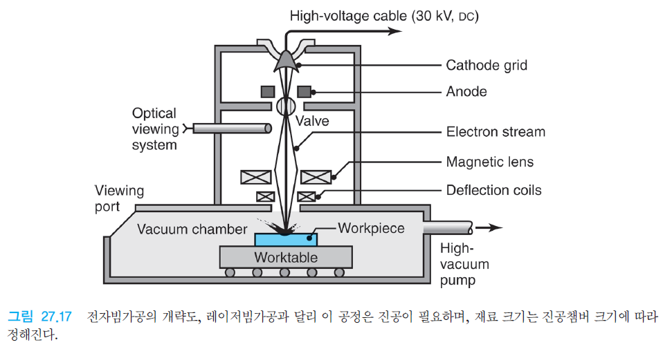 - 고속의 전자를 에너지원으로 하여 공작물 표면에 충돌시키는 가공법이다.