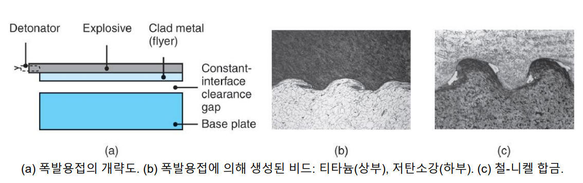 : 접합하고자 하는 모재 중 하나 ( flyer plate ) 위에 폭발물 층을 깔고 그 폭발에 의한 압력으로 용접하는 방법