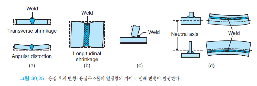 - 비틀림, 좌굴, 균열과 같이 잔류응력으로 인해 생기는 문제점들은 모재와 용접부를 예열함으로써 감소시킬 수 있다.