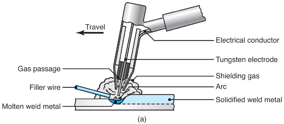 - 가스텅스텐 아크용접( GTAW: gas tungsten arc welding )