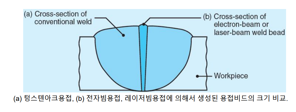 - 소모성 전극, 보호가스, 용재 등을 필요하지 않고, 빠른 시간에 좋은 품질의 용접부를 얻을 수 있고 자동화가 가능하다.