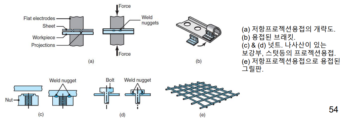 - 돌출부가 평평한 면과 접촉하여 국부적인 고온으로 상승하게 되어 용접이 되는 방식